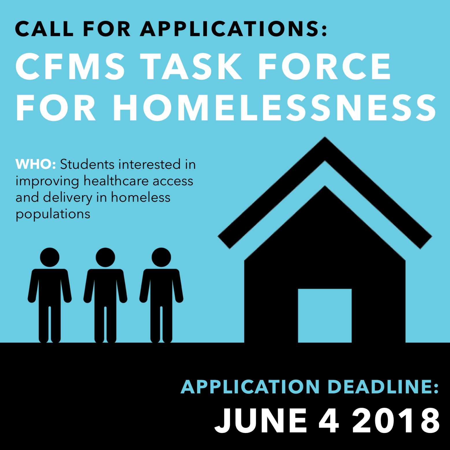 The CFMS is an organization representing over 8,000 medical students from 15 Canadian medical student societies from coast to coast. We represent medical students to the public, to the federal government, and to national and international medical organizations.Call for Applications: CFMS Task Force on Homelessness